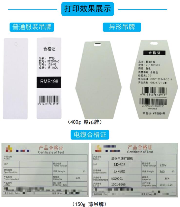 单张服装吊牌打印机是专业用于一张张打印单张服装吊牌,或单张产品合格证吊牌的打印机。它广泛使用于服装吊牌、鞋帽产品合格证吊牌。